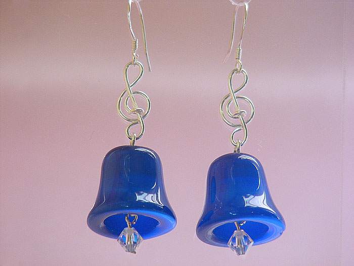 These earrings from TAF Music Gifts have 20 x 15mm navy blue cat eye bell beads. Each bell has a small silver plated treble clef on top and a 4mm Swarovski crystal AB bead inside the bell. Earrings have 925 silver hooks and overall length is about 5cm. Please note the earrings weight about 4.5 gram each. These funky earrings make lovely gifts for musicians, family and friends.