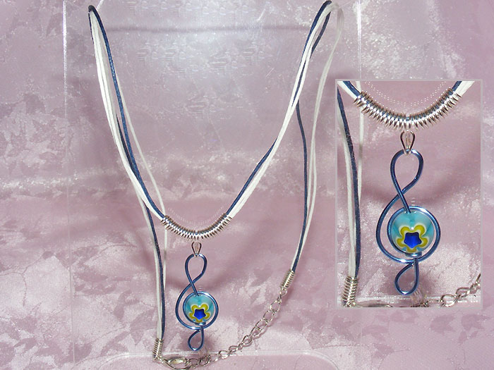 Blue Millefiori glass bead necklaces, other musical jewellery and non-jewellery music themed gifts are designed and handmade in Herefordshire UK workshop.