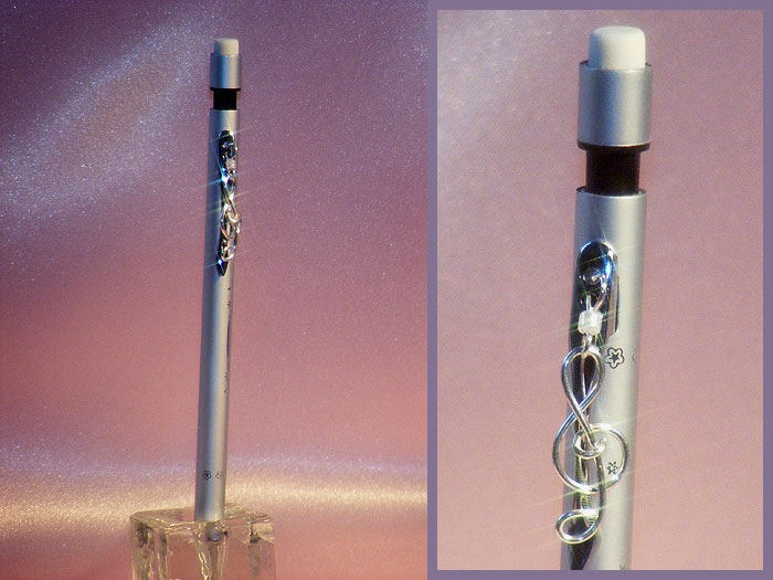 The charming silver mechanical pencils from TAF Music Gifts are decorated with handmade silver treble clef made of silver plated wire and a white seed bead. These pencils take widely available 0.7mm lead refilled (not included).